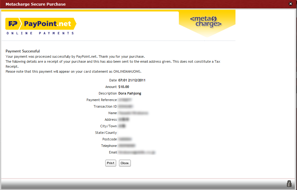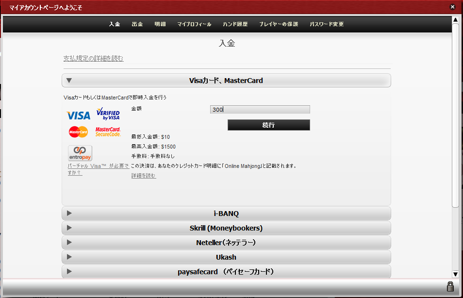 ※クレジットカード明細には「Online Mahjong」と記載されます。